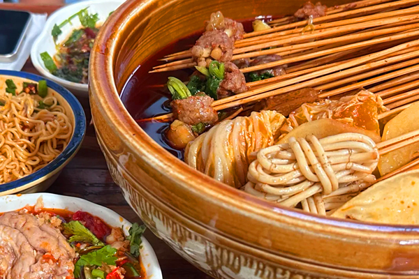 煮好的成都串串,每一串都裹著串串香底料的濃郁湯汁,麻辣款鮮辣醇厚,辣度溫和不刺激,麻香綿長不嗆喉,尾調帶著香料的復合香氣;清湯款則鮮爽清甜,襯得食材本味十足,無論是葷素食材都能被串串香底料賦予靈魂。一口下去,肉質鮮嫩、蔬菜脆爽,底料的風味與食材完美融合,讓人越吃越上頭,這正是成都串串的獨特魅力。